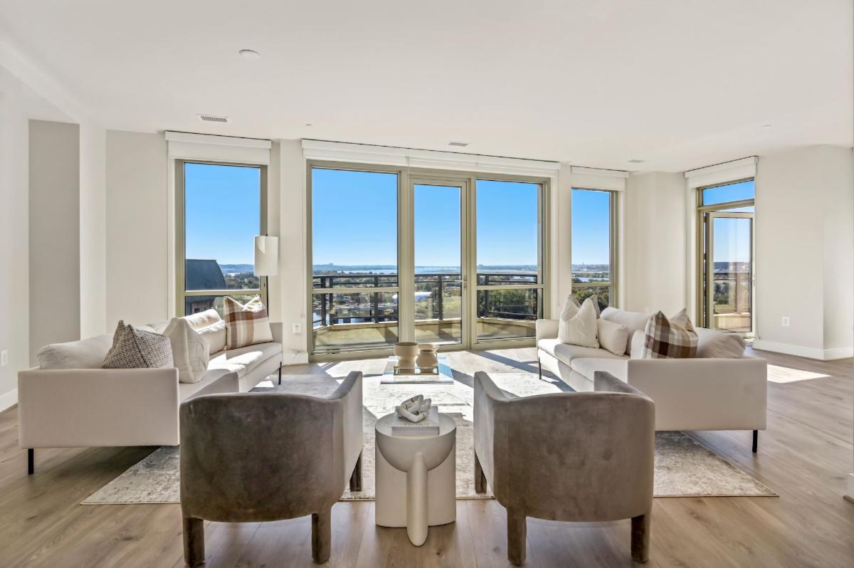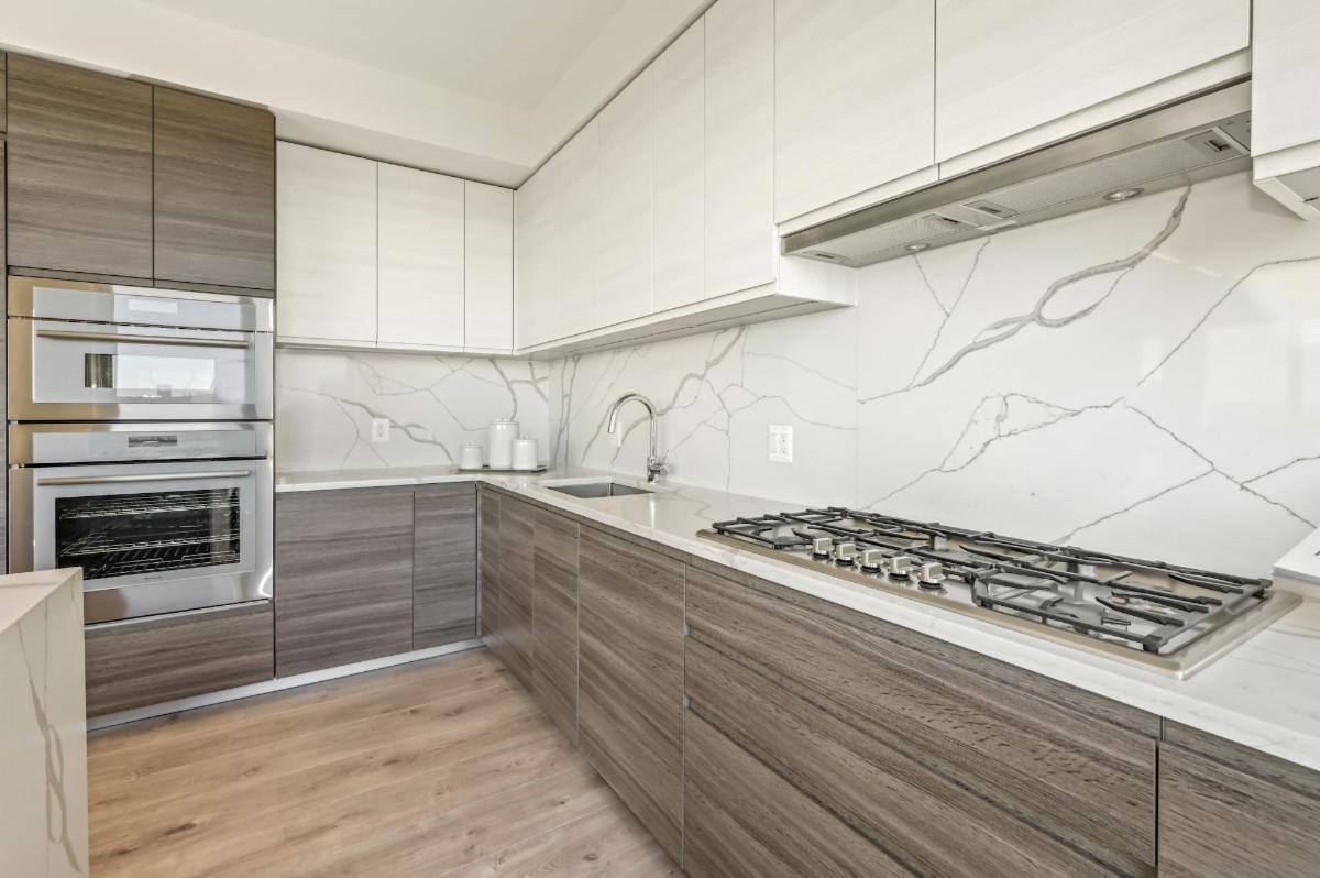 Residences in the Sky Suite and Penthouse levels offer access through private elevators for discrete comings and goings. Captivating views in every residence serve as scenic backdrops for everyday living. The open-plan designs offer chef kitchens with bold Italian cabinetry, Calacatta quartz countertops with full-height backsplashes and waterfall edges, and premier Thermador® appliances.
