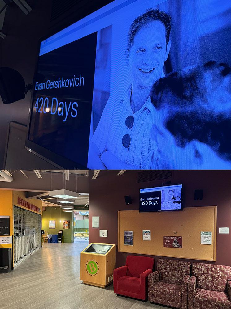 The plight of jailed Wall Street Journal reporter Evan Gershkovich ’14 is never far from the thoughts of many on campus. It’s now front and center for those who pass through Smith Union, and was the topic of a Reunion Weekend discussion that included friends and classmates Jeremy Berke '14, Sam Silverman '14, and a WSJ colleague.