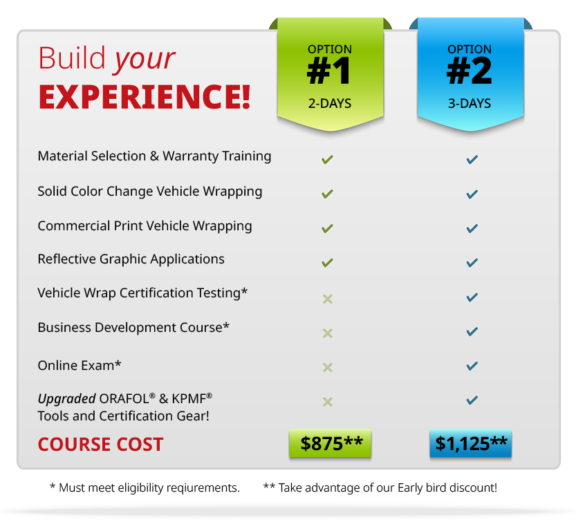 Professional Wrapping Academy this refresher course allows attendees to be hands-on with ORAFOL + KPMF in preparation for a practical exam held on the third day of the event. A virtual business development course, held at a later date/time, and online exam is also part of the certification testing.