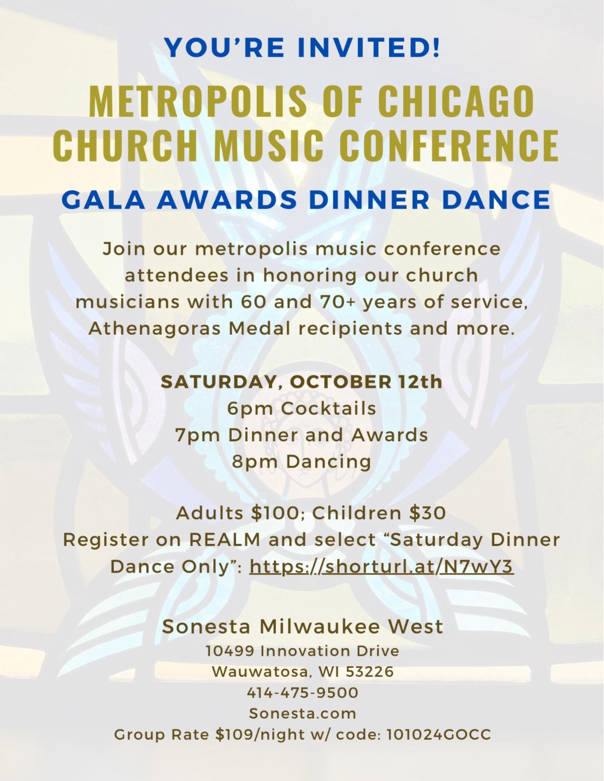 CHURCH MUSIC CONFERENCE GALA AWARDS DINNER DANCE --- Sat, Oct. 12