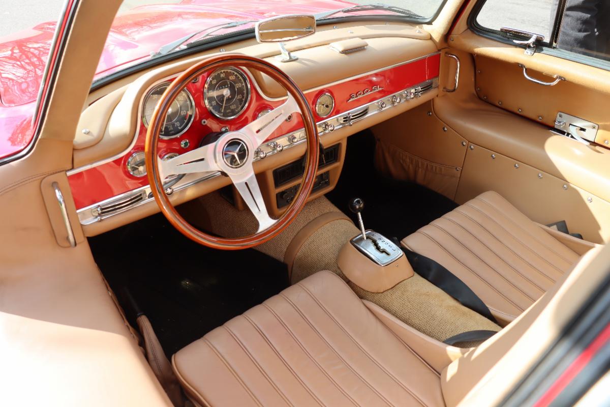 This stunning 300SL Gullwing Recreation was built in 1989 by 'Tony' Ostermeier, whose Gullwing Car Company was based in Gardena, California. Red with tan leather interior, this particular example is gorgeous inside and out with only 21k miles from new. Mechanically excellent, this Gullwing runs and drives well. Beautiful paint, chrome, and interior. The look and aesthetic of the car are shockingly accurate. Ostermeier's Gullwings were built on a modern Mercedes-Benz chassis with modern running gear including a fuel-injected inline-6 engine, automatic transmission, as well as modern suspension and brakes. They also had air conditioning making them very practical road cars. The moulds were made from the body of an original 300SL Gullwing to ensure accuracy, while the panels were made of aluminium reinforced with fiberglass and steel. The power steering makes for easy maneuverability and the power-assisted brakes are very capable. A rare opportunity to acquire a car that captures the stunning presence of the 300SL Gullwing and at a fraction of the price of an original. Finding one of these for sale can take years. Impressively accurate in its presentation, the car is effortlessly modern to drive, making it ideal for anyone seeking to enjoy the aesthetic experience of the Gullwing as often as possible.