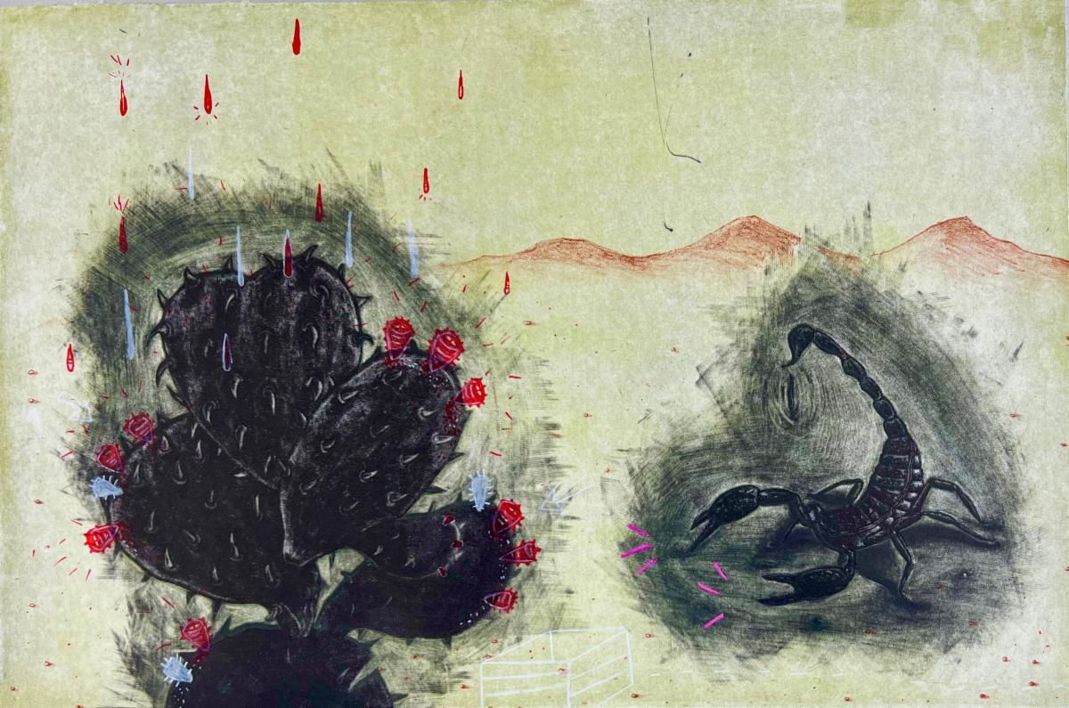Juana Hernandez, As Far As The Eye Can See, mezzotint, litho, hand color, 12 x 18 in, $400, BUY NOW | |