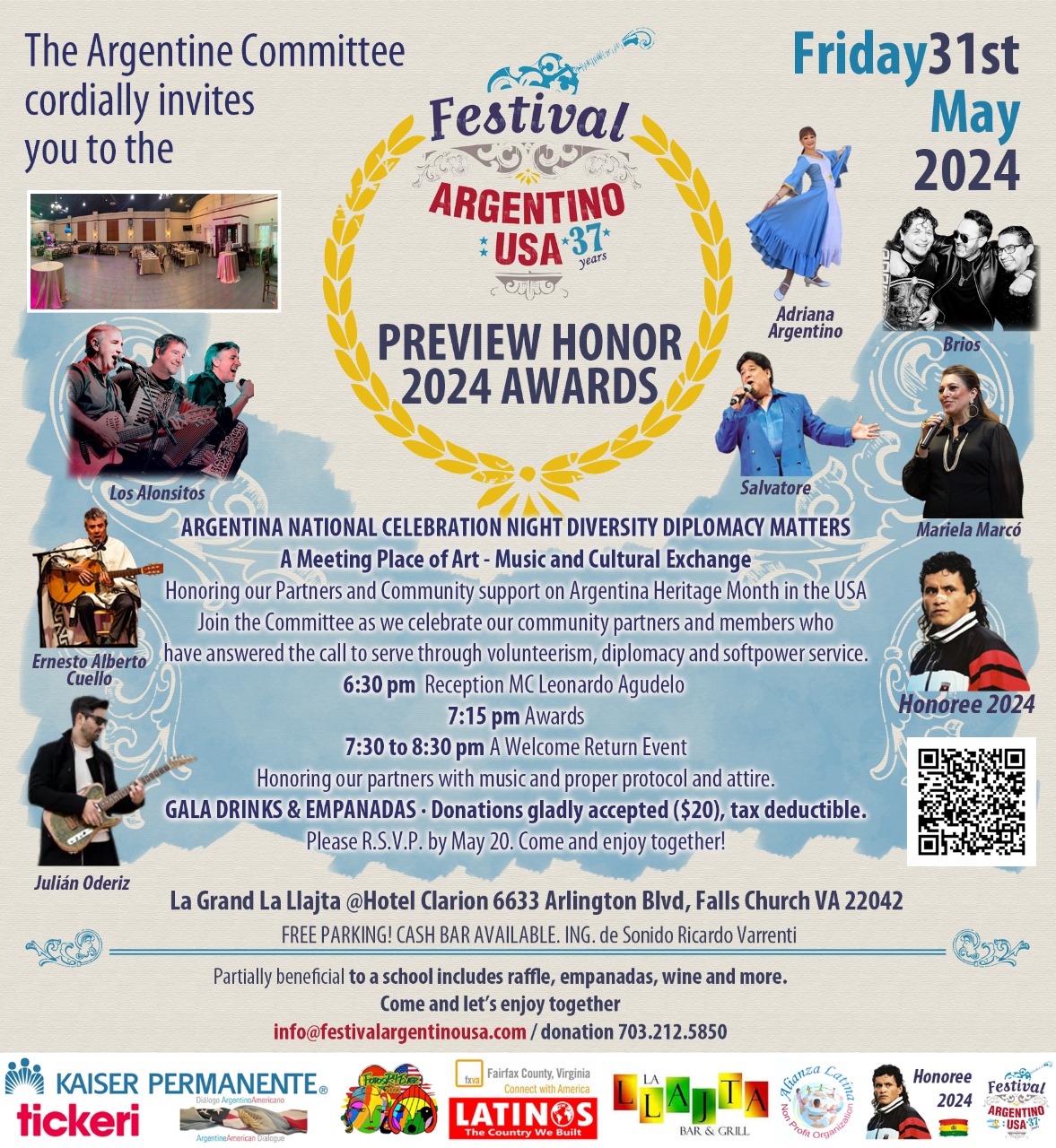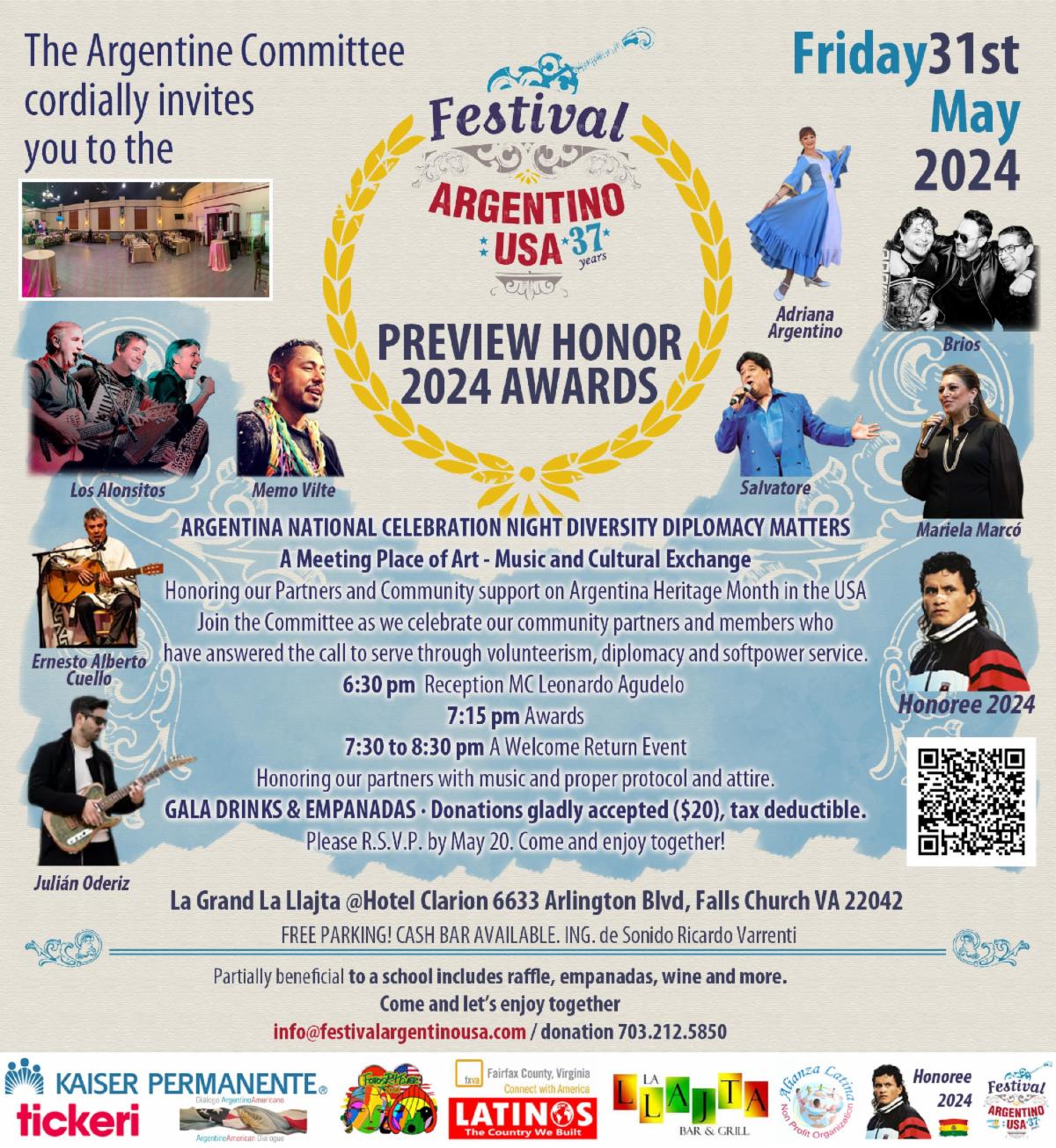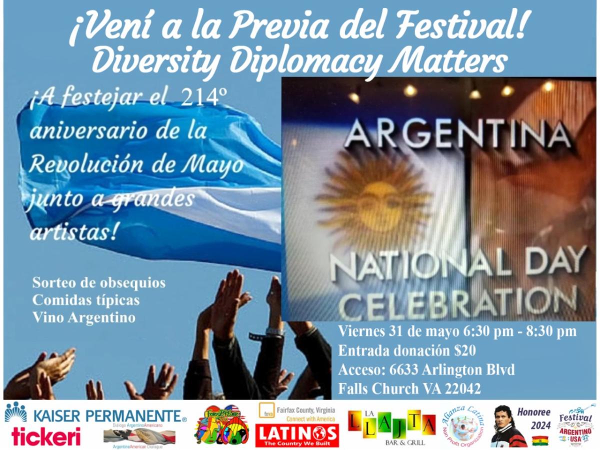 Arlington's Spring Festival Argentino will be on June 1st and The Preview at the Argentina Embassy on May 31st, 2024.