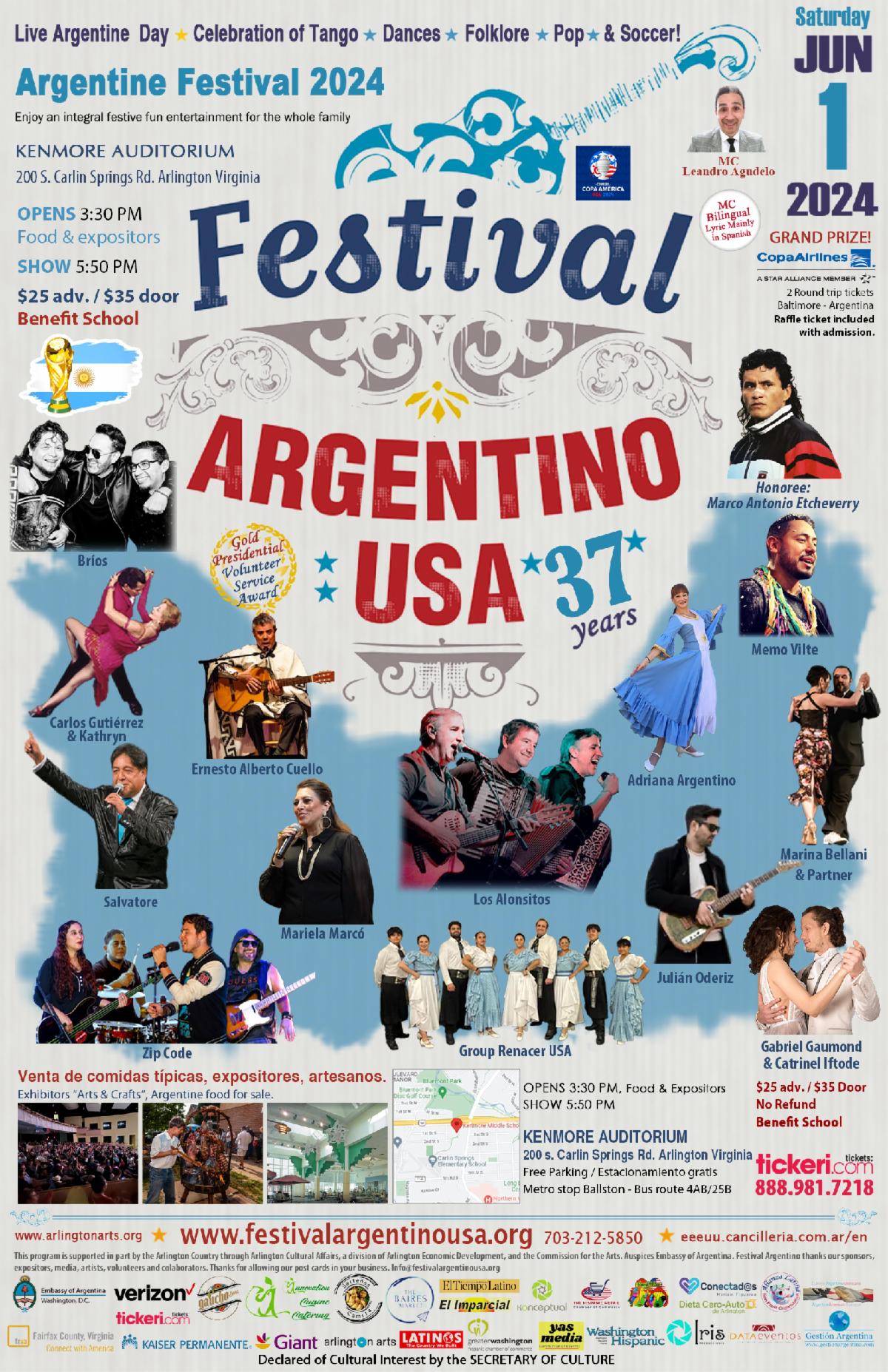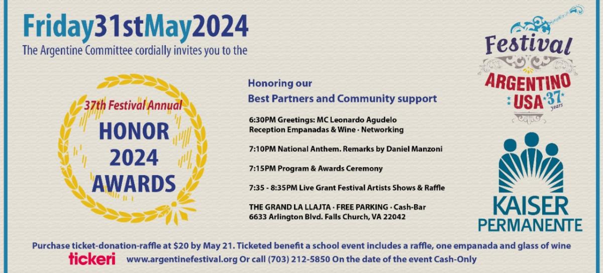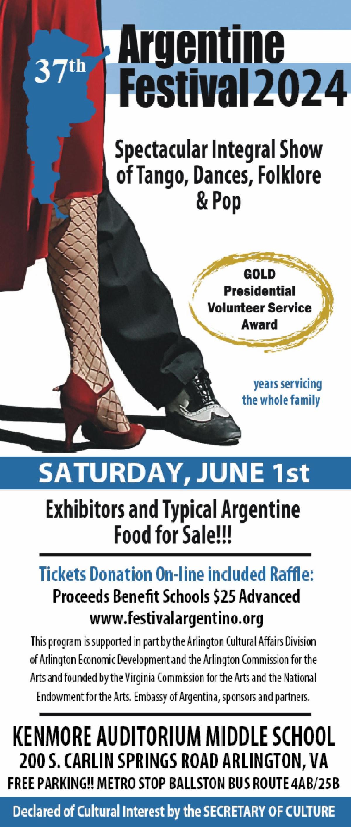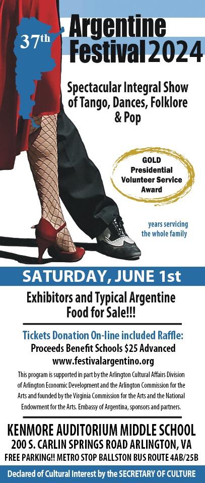 A great offer is to buy a ticket in advance and save about $10-$15, so think about that "for a limited time only". We look forward to the Spring Argentine Festival in Arlington, Virginia Stay tuned: 37TH ANNIVERSARY in 2024