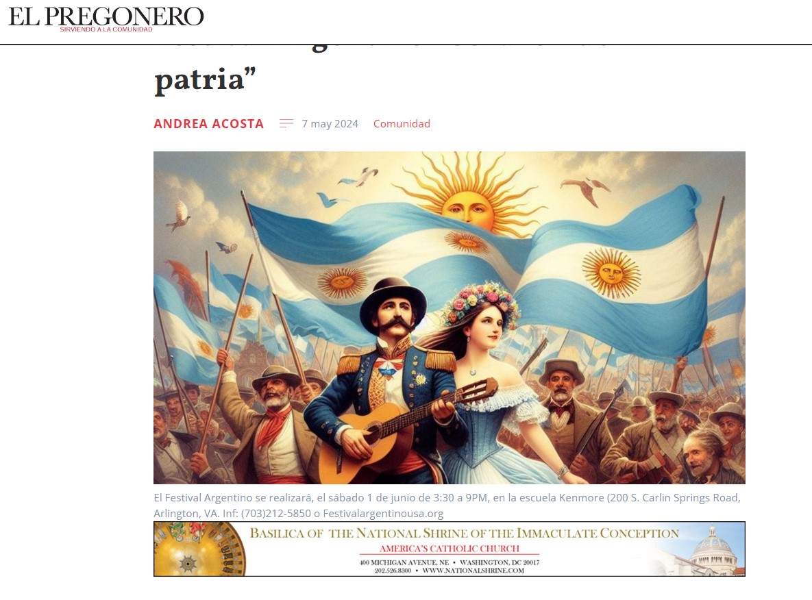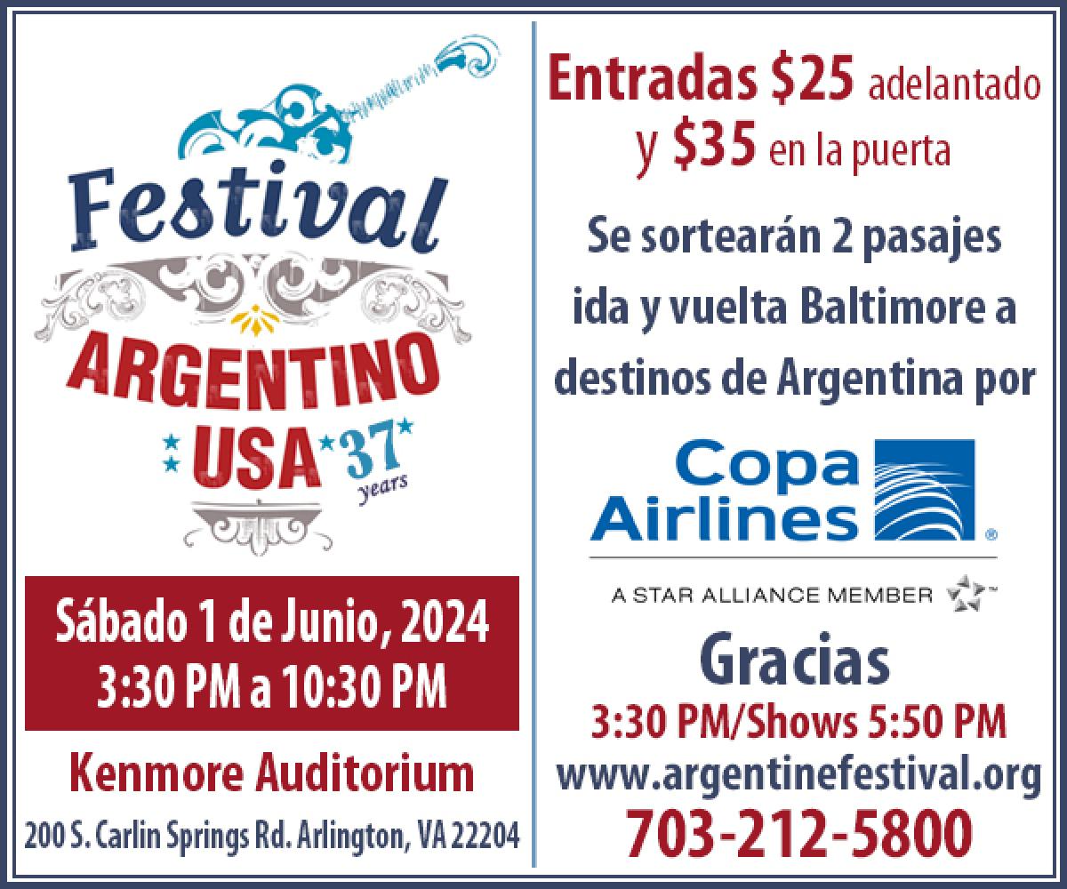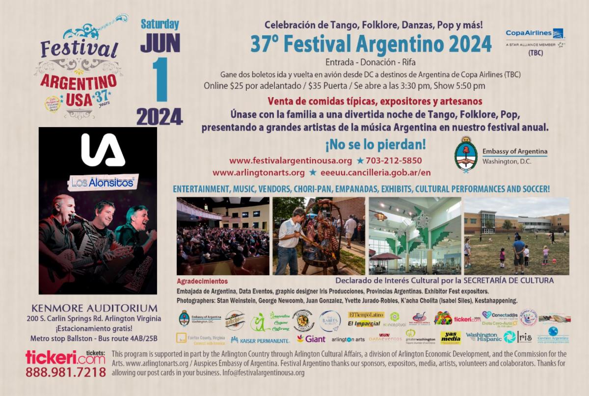 ¡Únete a nosotros en el Festival Argentino Latinoamericano en el Kenmore de Arlington, Virginia, el 1 de junio!