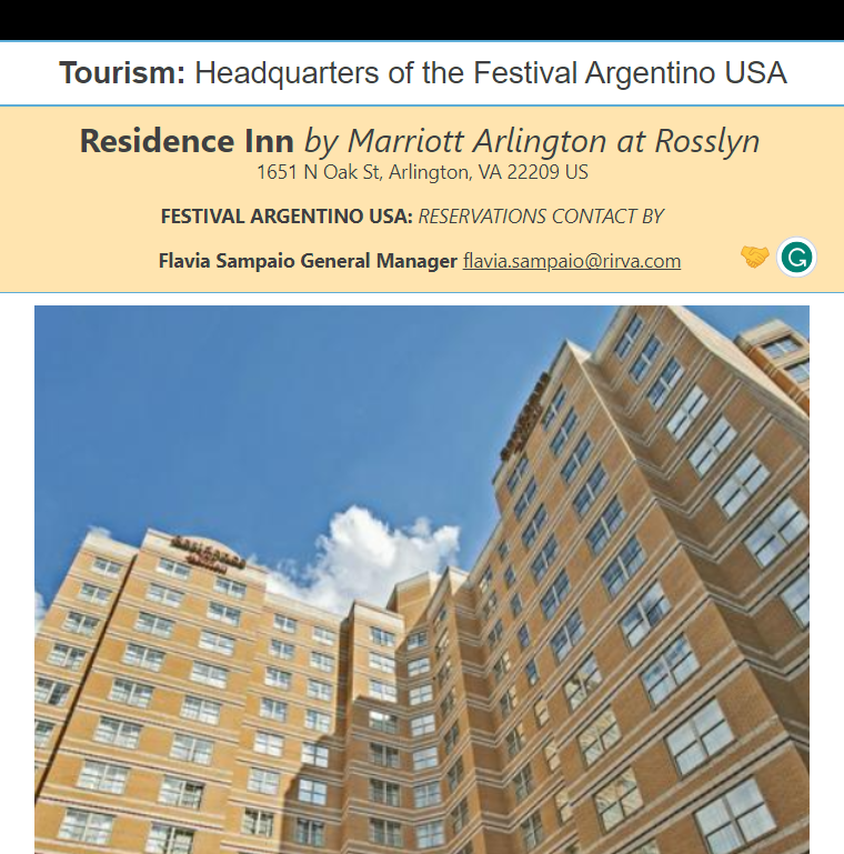 •It is also a promoter of the cultural, economic, and tourist activities of Argentina in Arlington County, and its metropolitan area, towards the Spanish-English speaking and International Communities.