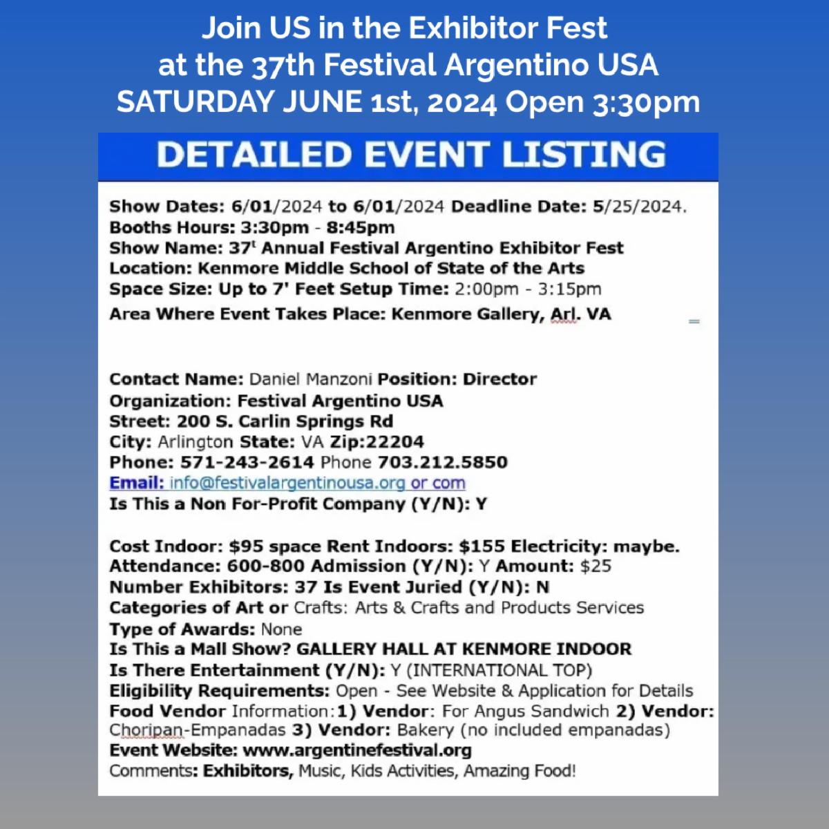 Exhibitor Fest is the top source for artists, musicians, craftspeople, vendors, festival-goers, and others seeking to participate in the most comprehensive 37th Argentine Annual Festival event.