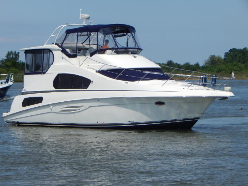 THIS BOAT IS NICELY EQUIPPED WITH AIR CONDITIONING, REVERSE CYCLE HEAT, GENERATOR, COMPLETELY EQUIPPED GALLEY, FLEXSTEEL SETTEES, BACK UP CAMERA, ELECTRONICS, AFT HARDTOP, WINDLASS, FULL CANVAS ENCLOSURE ON THE BRIDGE, FULL CANVAS ENCLOSURE ON THE AFT DECK, SEAT BOLSTERS, REAR TRANSOM SETTEE, DECK CARPETING, SPOTLIGHT, EXTENDED SWIM PLATFORM, EXCLUSIVE TURNKEY DELIVERY PACKAGE AND SO MUCH MORE. BOAT IS SHOWROOM CLEAN AND MAINTAINED TO THE MAX. EXCEPTIONAL BUY!