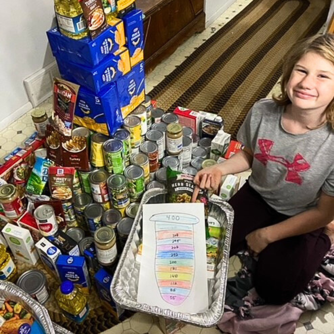 This is Louise. She's been hosting a food drive for our Thanksgiving Basket Drive for the last four years, and each year she's set a higher goal for herself. What started as a goal of 100 items in 2020 became 400 in 2023, and guess what? She exceeded her goal!