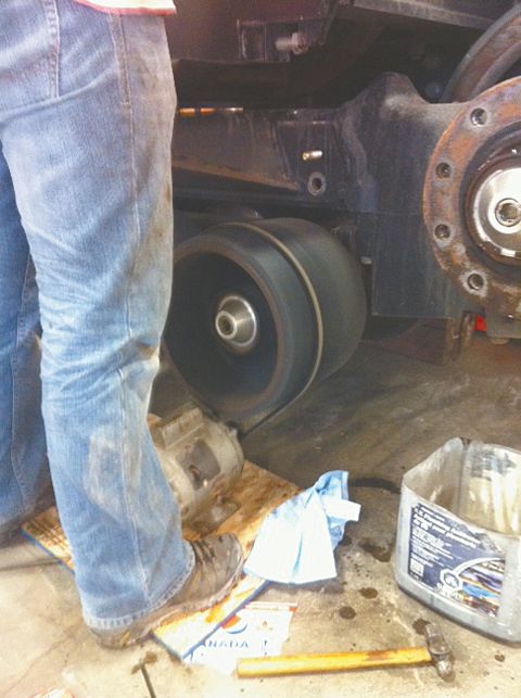 The welding table is made from 4 by 6-in. steel tubing. At one end, the table is attached by a pipe-in-pipe bearing to an irrigation wheel gearbox with forward and reverse drives. It’s powered by a 3/4 hp electric motor. A large pulley from an Oliver model 40 combine...Read More!
