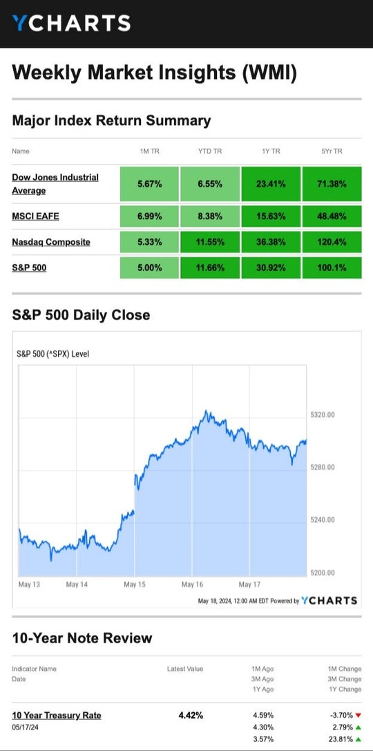 The forecasts or forward-looking statements are based on assumptions, may not materialize, and are subject to revision without notice. The market indexes discussed are unmanaged, and generally, considered representative of their respective markets. Index performance is not indicative of the past performance of a particular investment. Indexes do not incur management fees, costs, and expenses. Individuals cannot directly invest in unmanaged indexes. Past performance does not guarantee future results. The Dow Jones Industrial Average is an unmanaged index that is generally considered representative of large-capitalization companies on the U.S. stock market. Nasdaq Composite is an index of the common stocks and similar securities listed on the NASDAQ stock market and is considered a broad indicator of the performance of technology and growth companies. The MSCI EAFE Index was created by Morgan Stanley Capital International (MSCI) and serves as a benchmark of the performance of major international equity markets, as represented by 21 major MSCI indexes from Europe, Australia, and Southeast Asia. The S&P 500 Composite Index is an unmanaged group of securities that are considered to be representative of the stock market in general. U.S. Treasury Notes are guaranteed by the federal government as to the timely payment of principal and interest. However, if you sell a Treasury Note prior to maturity, it may be worth more or less than the original price paid. Fixed income investments are subject to various risks including changes in interest rates, credit quality, inflation risk, market valuations, prepayments, corporate events, tax ramifications and other factors. International investments carry additional risks, which include differences in financial reporting standards, currency exchange rates, political risks unique to a specific country, foreign taxes and regulations, and the potential for illiquid markets. These factors may result in greater share price volatility. Please consult your financial professional for additional information. This content is developed from sources believed to be providing accurate information. The information in this material is not intended as tax or legal advice. Please consult legal or tax professionals for specific information regarding your individual situation. This material was developed and produced by FMG Suite to provide information on a topic that may be of interest. FMG is not affiliated with the named representative, financial professional, Registered Investment Advisor, Broker-Dealer, nor state- or SEC-registered investment advisory firm. The opinions expressed and material provided are for general information, and they should not be considered a solicitation for the purchase or sale of any security. Copyright 2024 FMG Suite.