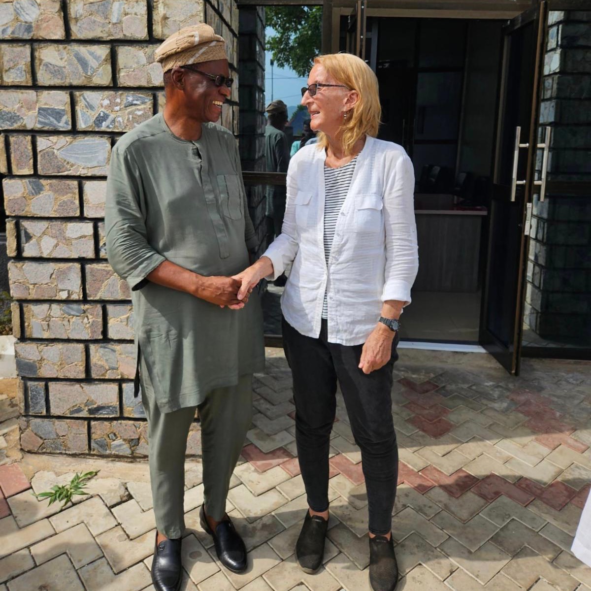 Wait until you hear about the reaction of the Imala Kabiyesi to the new high school and WAMCO project in his domain! The Kabiyesi sent me and the local chief an invitation to his palace; I had no idea what it was he wanted! When we entered the room, Kabiyesi motioned for me to sit next to him, then extended his hand. I took it. He proceeded to thank me profusely for the WAMCO project and for the new Friends and Neighbors High School, and asked that we make arrangements for him to come and commission both projects!! So great!!