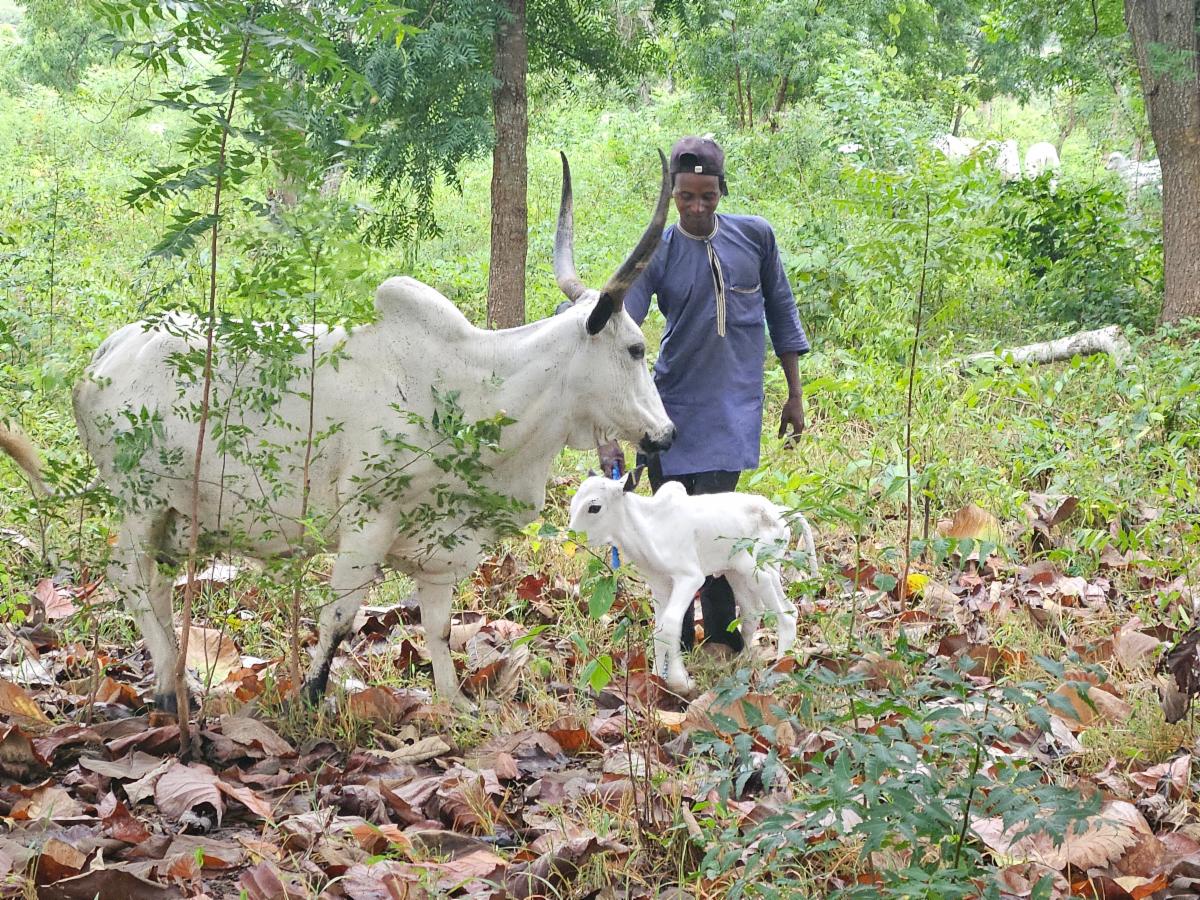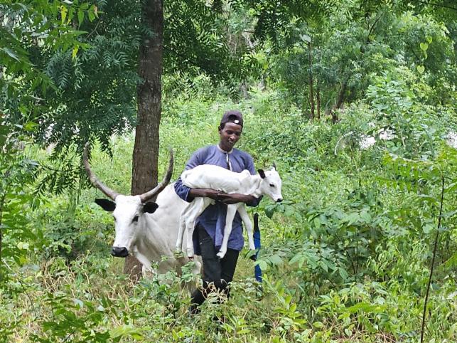 I decided that we should invest in 5 new milk cows, so as to have an income from WAMCO as well! We presently have a herd of 29 cattle. Only 7 of these are milk cows, according to the herdsman, Aliyu. So, with the help of a long-time friend and donor, Mike Sparling, we’ll buy 5 more cows. Aliyu will do the milking each morning and we, SFA, will be part of those receiving pay for that milk. Also, it will set an example to other Fulani who maybe aren’t yet fully convinced of the project’s value. If WE can make a success of selling our cows’ milk, they can too! I've attached photos of the new calf just born to a happy mama cow in our herd! The herdsman, Aliyu, carried her to show me!!