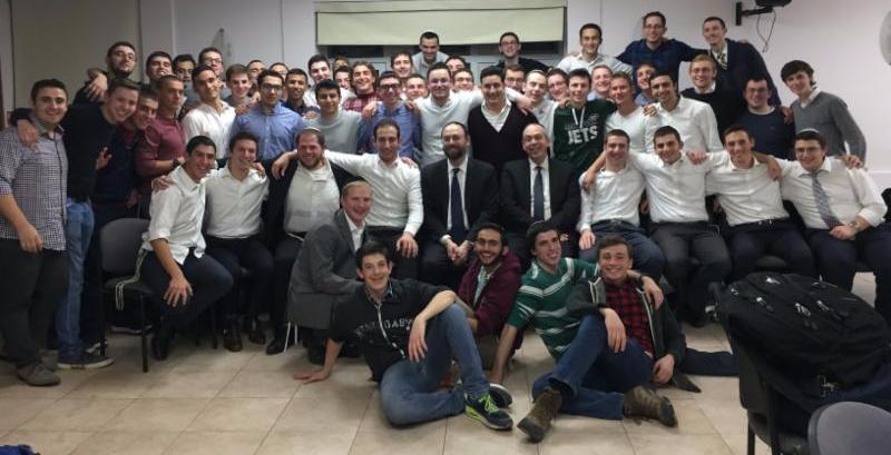 Shana Aleph and Shana Bet students gathered together with YUHSB Leadership on Motzei Shabbos, January 21st |