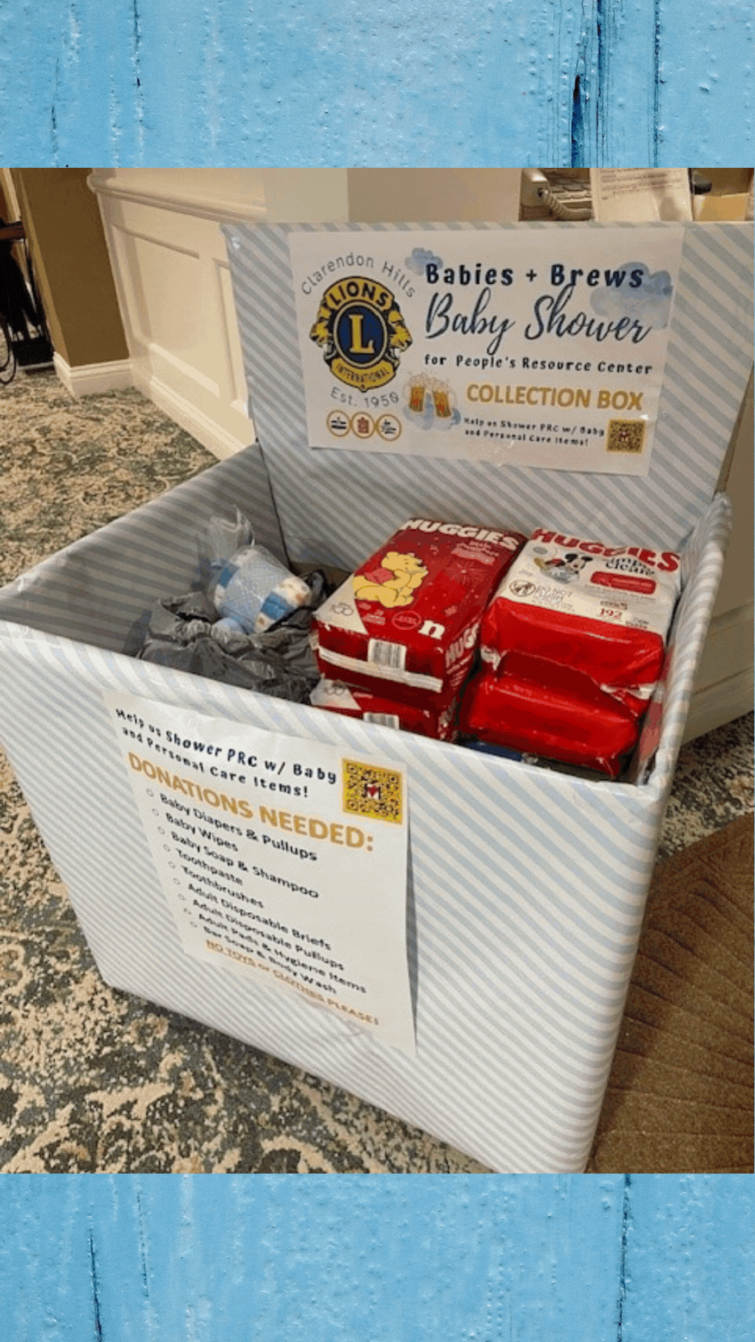 The Clarendon Hills Lions Babies & Brews Diaper and Personal Care items Drive is going full stream ahead in Clarendon Hills. Thank you to all who have already donated cash, diapers, shampoo, soap and more for our neighbors who visit PRC’s Food Pantry. If you haven’t joined in yet, it’s not too late.