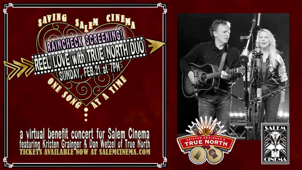 We are so excited to offer this incredibly special virtual benefit concert for Salem Cinema featuring Kristen Grainger and Dan Wetzel of the band True North!