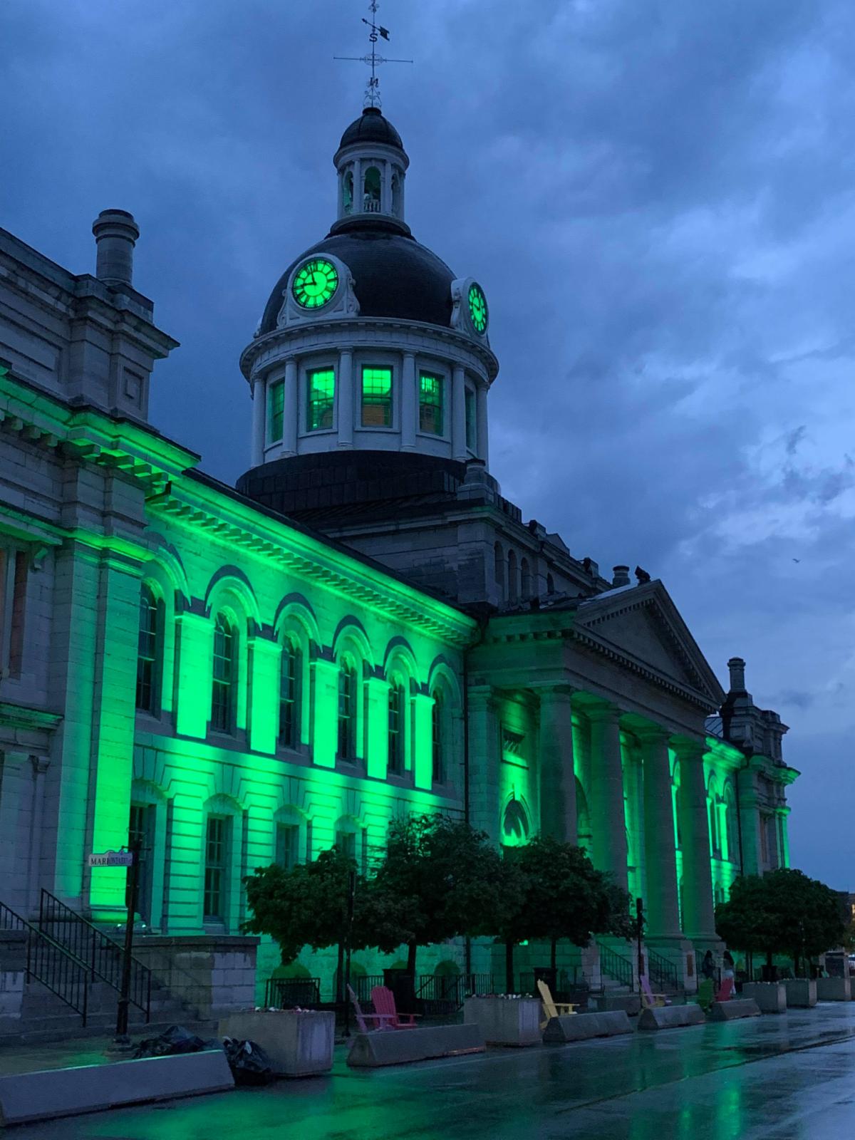 - Encouraging your place of work to Participate in the Light Up Canada! challenge. We’re pleased to share that many locations in Ontario, including Toronto, Ottawa, Kingston and Belleville, will be using green lights at their location to signal awareness towards Injury Prevention.