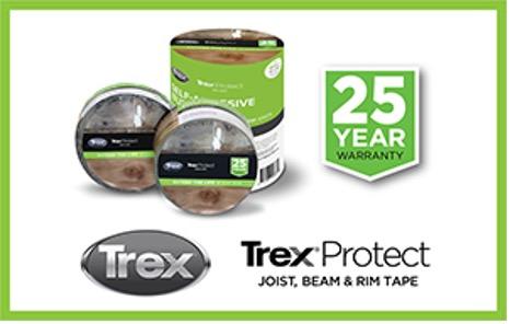 Protect the substructure of a deck from the damaging effects of moisture, rot and mold by installing Trex® Protect™ joist, beam and rim tape…Learn More.