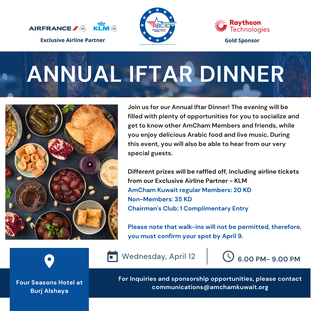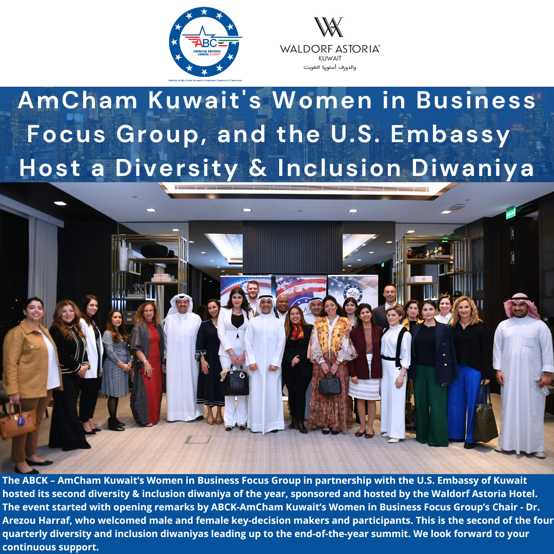 March 14: AmCham Kuwait’s Women in Business Focus Group in partnership with the U.S. Embassy of Kuwait hosted its second diversity & inclusion diwaniya of the year, sponsored and hosted by the Waldorf Astoria Hotel. This is the second of the four quarterly diversity and inclusion diwaniyas leading up to the end-of-the-year summit. We look forward to your continuous support. Read more | | |