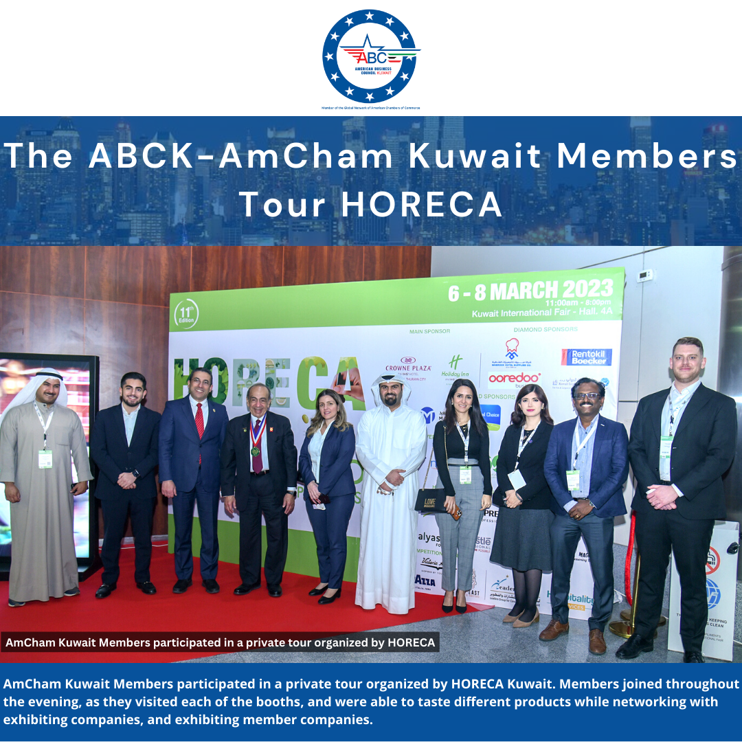March 6: AmCham Kuwait Members participated in a private tour organized by HORECA Kuwait. Members joined throughout the evening, as they visited each of the booths, and were able to taste different products while networking with exhibiting companies and exhibiting member companies. Read more | | |