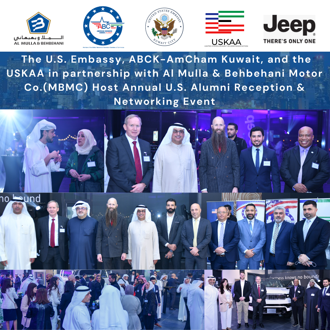 The U.S. Embassy, AmCham Kuwait, and Al Mulla & Behbehani host the U.S. Alumni reception at the JEEP showroom