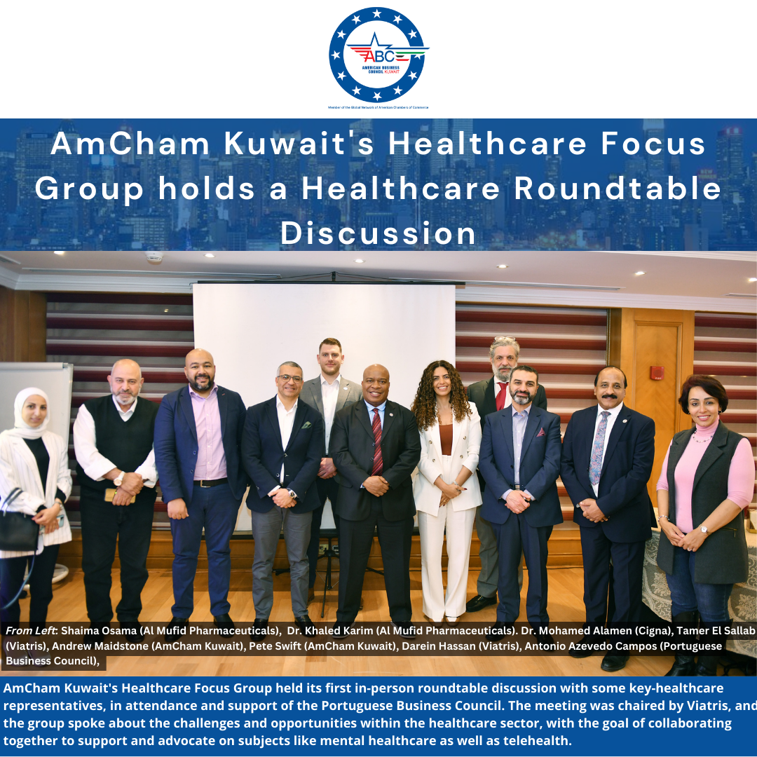 March 8: AmCham Kuwait's Healthcare Focus Group held its first in-person roundtable discussion with some key-healthcare representatives, in attendance and support of the Portuguese Business Council. The meeting was chaired by Viatris, and the group spoke about the challenges and opportunities within the healthcare sector, with the goal of collaborating together to support and advocate on subjects like mental healthcare as well as telehealth. Read more | | |