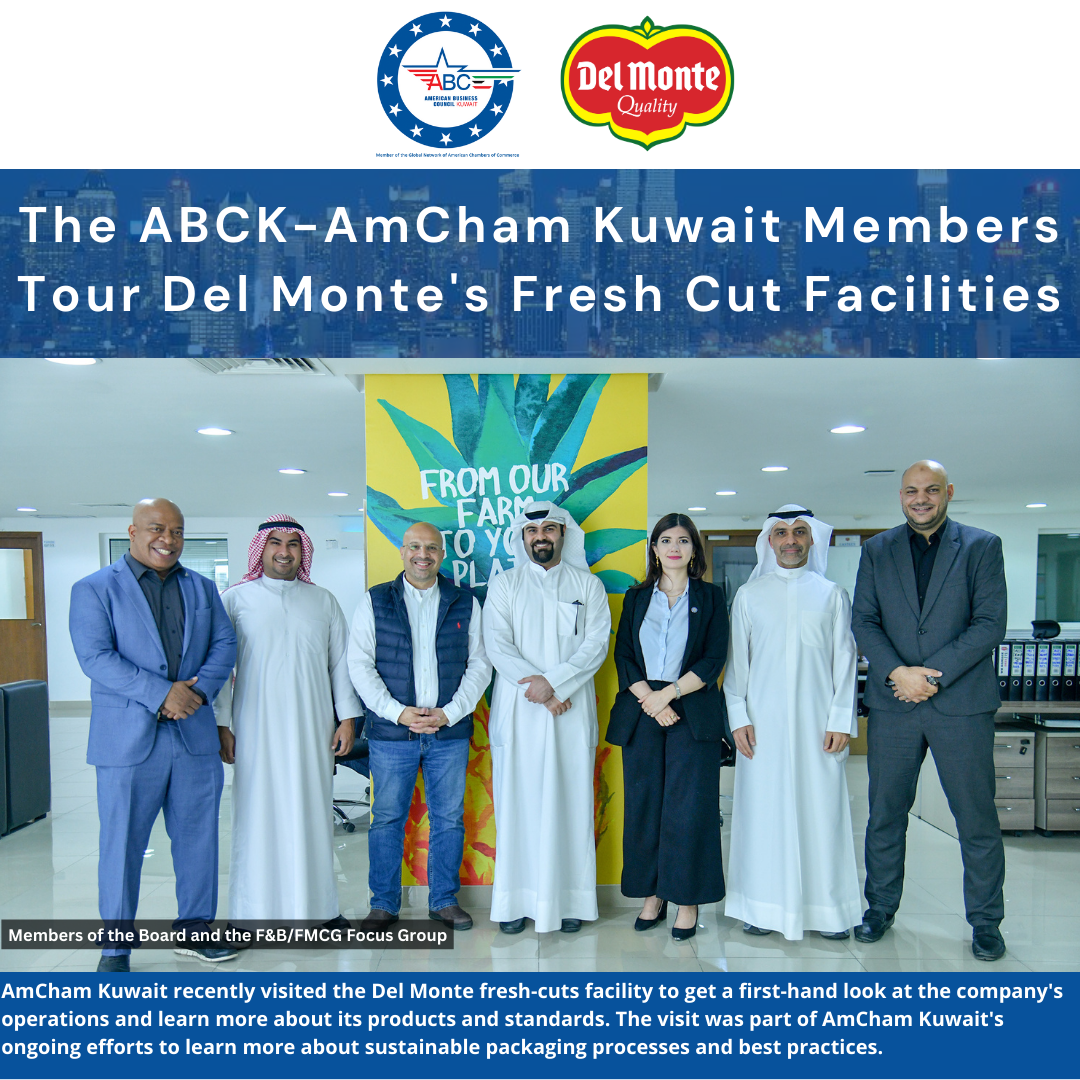 March 27: AmCham Kuwait recently visited the Del Monte fresh-cuts facility to get a first-hand look at the company's operations and learn more about its products and standards. The visit was part of AmCham Kuwait's ongoing efforts to learn more about sustainable packaging processes and best practices.