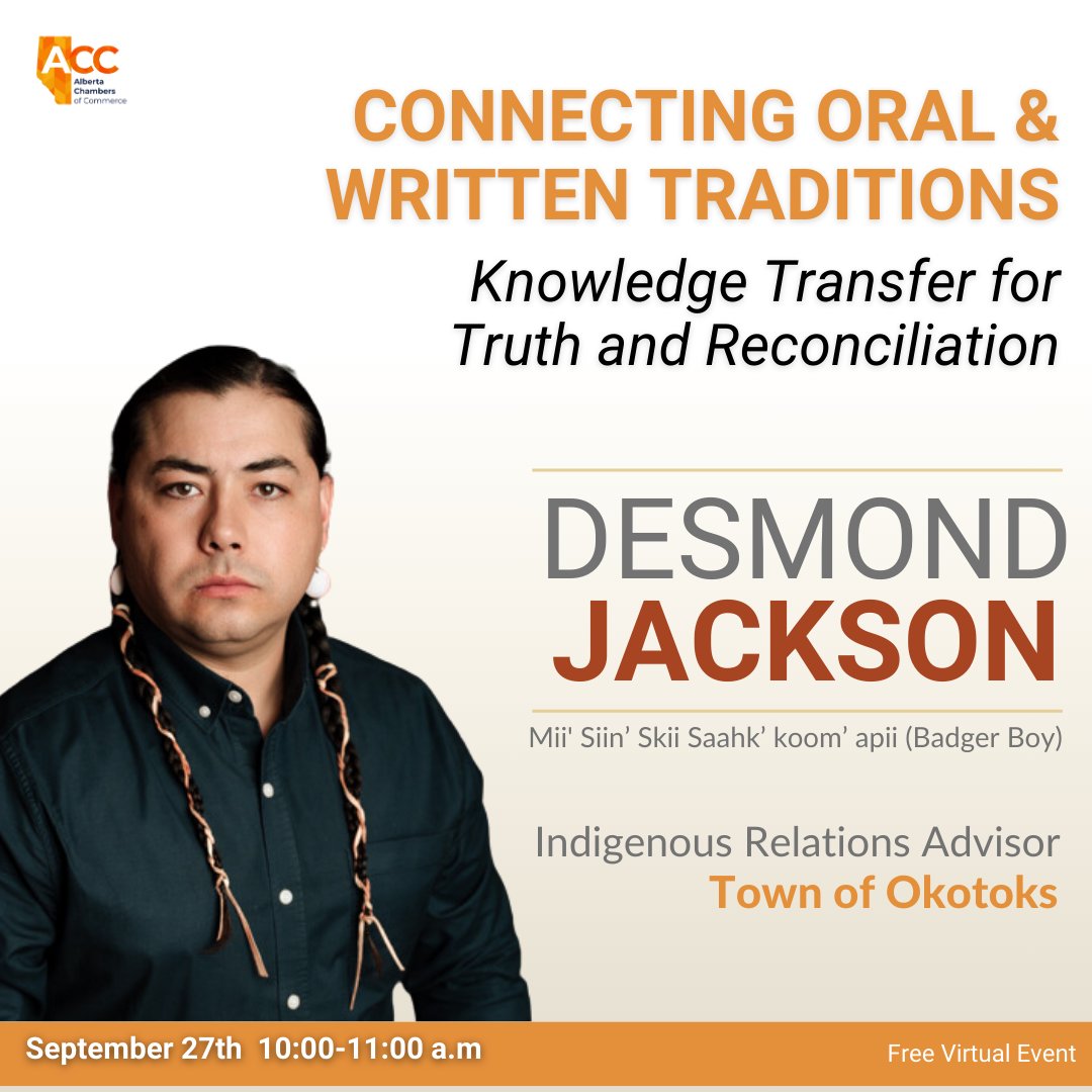 We are thrilled to announce that Desmond Jackson, Okotoks Indigenous Relations Advisor, will be the keynote speaker at our virtual event on September 27, 2024. Desmond will share his unique insights on bridging Indigenous oral traditions with Western written frameworks, fostering mutual respect and understanding in the business community.