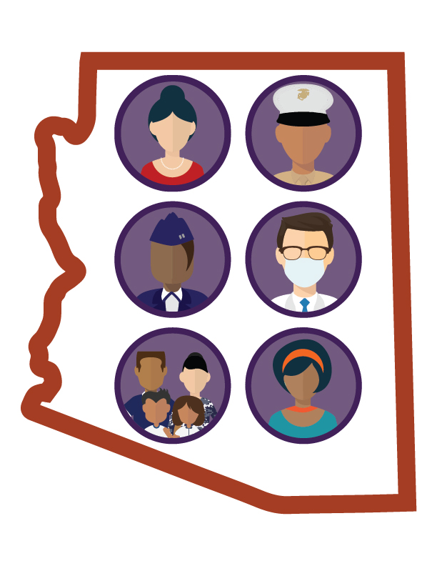The Arizona Coalition for Military Families works collaboratively with government agencies, community members, and partner organizations to form an Ecosystem of Support that Arizona's service members, veterans, and their families can access through the Be Connected support line, 866-4AZ-VETS, and ConnectVeterans.org. Be Connected offers no-cost support and connections to resources and has trained more than 6,000 community members to provide resource navigation services. | | | | |