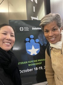 Arizona Department of Veterans’ Services Director Wanda Wright and ACMF Project Director Nicola Winkel attended a Veteran Suicide Prevention Workshop hosted by the American Foundation for Suicide Prevention and Deloitte in Washington, DC, in October 2022. The purpose of the workshop was to develop action plans for addressing suicide in three focus populations: women, rural and American Indian veterans. The two-day event featured remarks and panels from leaders from the VA, Department of Defense, and other key entities, as well as intensive workgroup sessions.