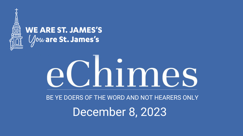 At the 9 and 11:15 am services there will be an opportunity for everyone to come forward and add an ornament to our Tree of Thanksgiving (which is different from the Giving Tree in the Narthex) that represents the gifts God has given you that you share with the St. James’s community. There will be pledge cards in the bulletin, so you can bring your pledge up too! (You an also put your pledge card in the collection plate.)