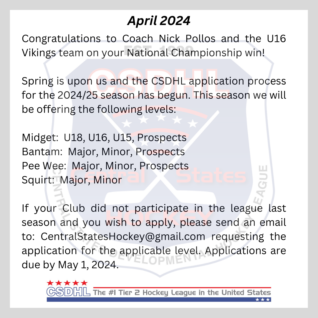 Tier II player substitute choice applications will open on June 15, 2024. The application and description of the process will be available on AHAI.org. | |