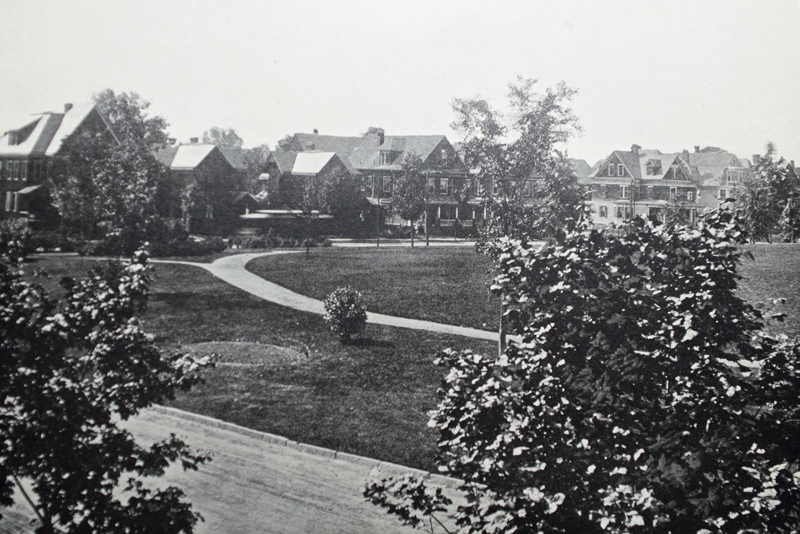 Sigourney Square Park is a piece of the original design of the Asylum Hill neighborhood when it was first laid out in 1895. It has been and continues to be a critical piece of the social network of the neighborhood. This photo looks over the park to Ashley Street, note the trolley car.
