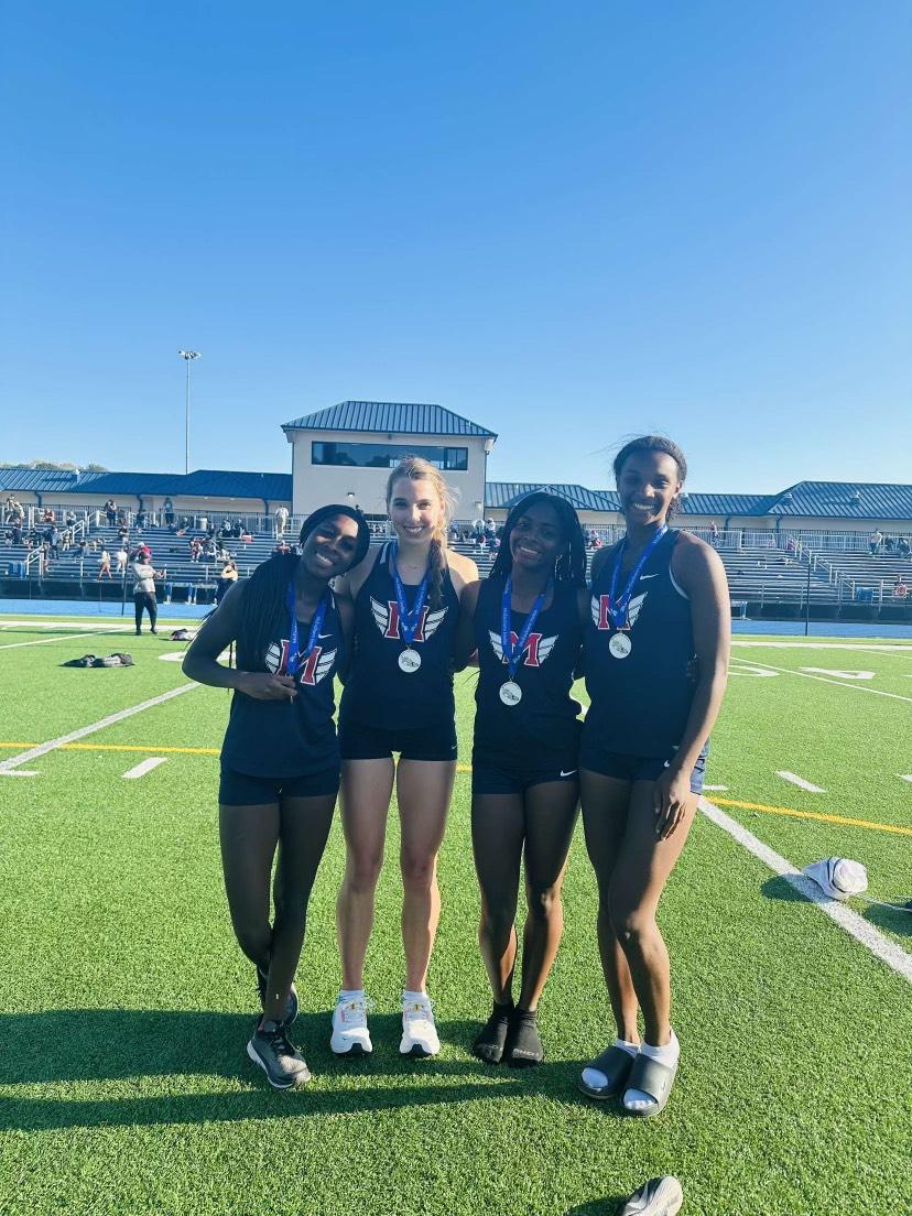 The Lady Eagles (13th-23.5 pts) defeated 19 other schools while scoring from many different running events. The 4x800m relay (2nd-10:12.97) started off the day with a runner-up finish. Senior Calista Cacciatore, junior Ella Franke & freshman Lucie Gallagher & Aarushi Dhawan came from as far back as 9th the place 2nd in a season’s best time. The highlight of the long meet for Milton was the 4x400m relay (3rd-4:03.98) team of seniors Nya Smith, Ella Grace Malcom, Leelah Dennie & freshman Simone Dennis with their win in a slower heat to take 3rd overall & just missing the 8-year-old school record of 4:03.93. Malcom also scored for the Lady Eagles in the 800m (3rd-2:20.06). Simone Dennis also scored in 2 events with her 100m (7th-12.23) & 200m (8th-25.12) performances. The latter made her the 2nd best performer in school history, just missing the school record by .12!