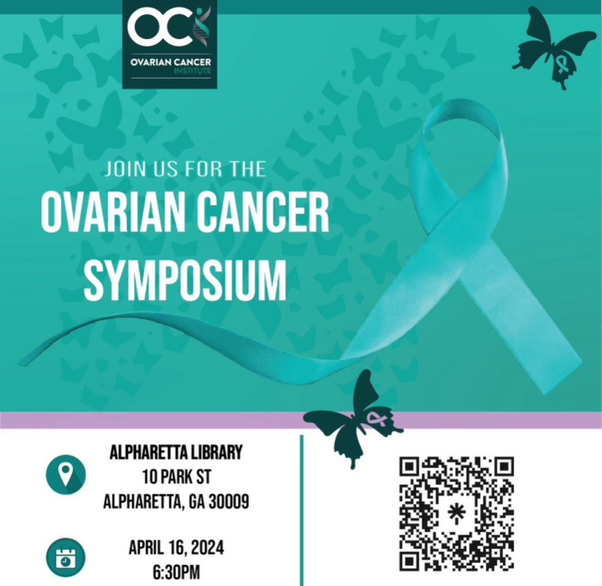 Please join me for an informative symposium on Ovarian cancer. Learn about signs, symptoms, early detection and cutting edge research in progress at the OCl lab at Georgia Tech to develop a life-saving screening test.