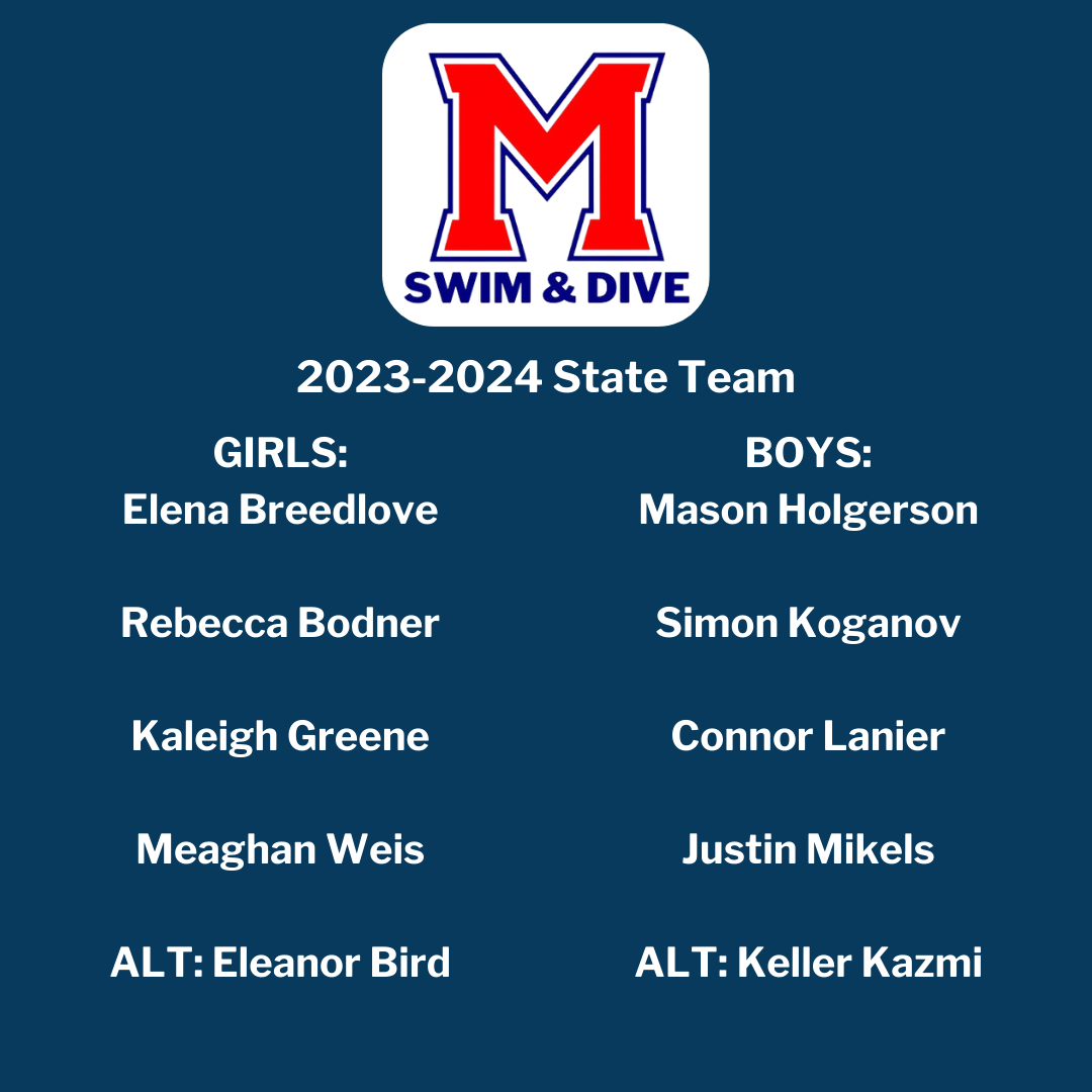 Congratulations to the Milton High School State Swim Team! These students are on their way to the GHSA State 7A Swimming Prelims & Finals Meet this Saturday, February 10 at the Georgia Tech Aquatic Center in the following events: