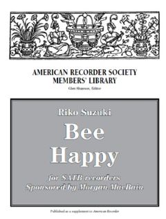 The Members' Library Edition with this issue is called "Bee Happy" by Glasgow-based composer Riko Suzuki, who says "This piece should be played with a smile on your face." It is a great opportunity for recorder players to practice flutter-tonguing. Glen Shannon describes the piece: "Infectious joy awaits the players and listeners of this upbeat and lighthearted quartet." Play-along files are available thanks to Chaz Warren.