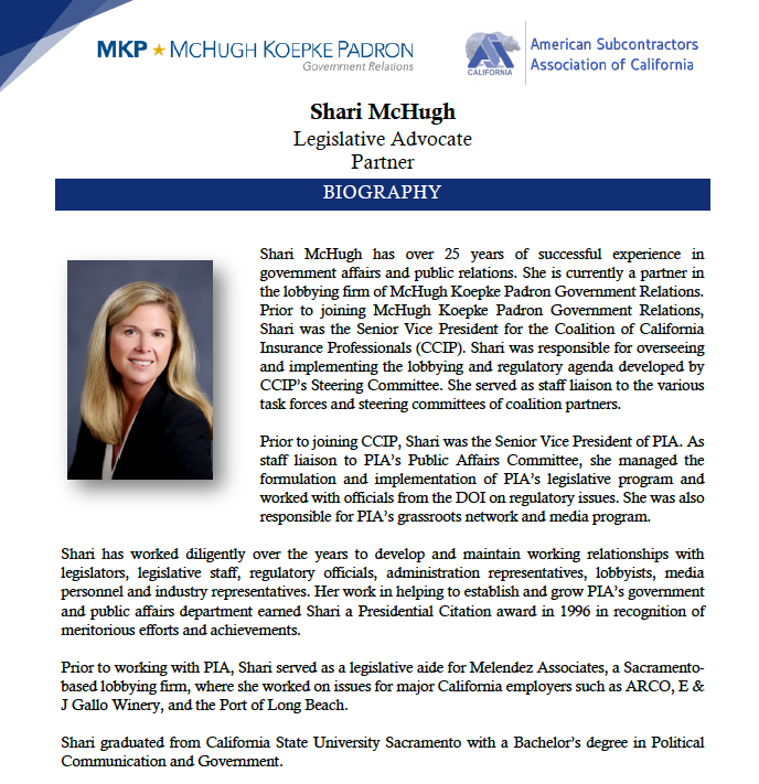 McHugh Koepke Padron (our new lobbyist) has provided a quick recap of legislation that the