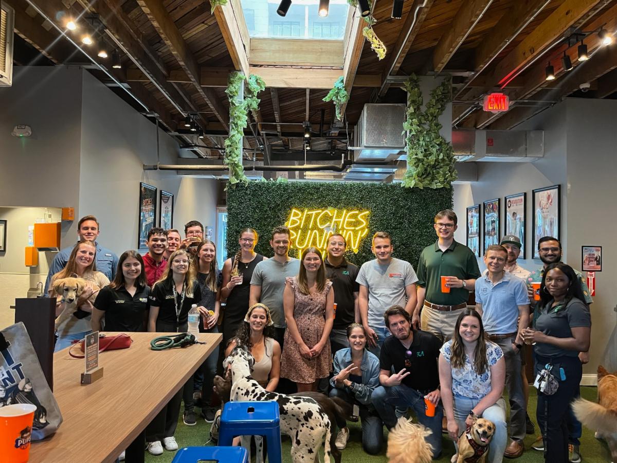 YMF hosted a joint happy hour with our pups in July. We had a fun time watching all the pups have a case of the zoomies and trying to steal pizza. Thank you to all who attended including the pups!