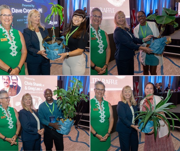 The Florida Section Sustainability Committee hosted a raffle at the Annual Conference on July 10-12, 2024 in Bonita Springs. Attendees could receive a raffle entry for sustainable practices such as bringing a reusable beverage container for use at the conference, driving an electric vehicle, or carpooling to the conference. Raffle winners were selected and presented at the Awards and Installation Luncheon on Friday the 12th. Prizes included plants sourced from a nursery local to the conference area.