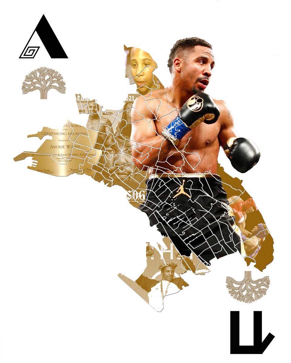 1) Picture of Andre Ward as a child boxer 2) Ward won a gold medal in the 2004 Athens Olympics, making him the last American male boxer to win gold in the Olympics. 3) He finished his career in 2017 undefeated (32-0, 16 KOs) and won multiple championship titles in two weight classes: super middleweight and light heavyweight. 4) He was inducted into the International Boxing Hall of Fame in 2021 — a class that featured Floyd Mayweather, Laila Ali and Wladimir Klitschko.