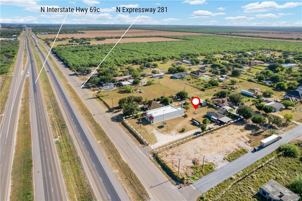 EXPRESSWAY FRONTAGE!!!! Beautiful commercial building , solid block construction. Divided up for now but never completely / 85% complete. Needs AC and flooring& fixtures.........On US IH 69/ N281 and just south of FM 490 intersection on expressway frontage road. Also as plus has a 1200 square foot home in rear of property , very well decorated on inside. Several storage sheds are included and totally fenced with electronic main gate entrance.