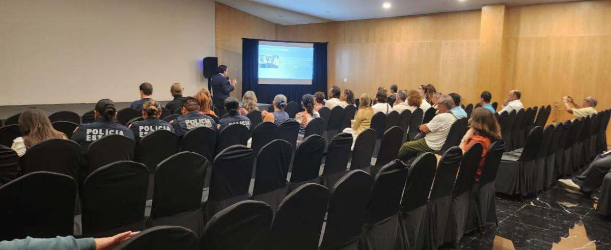 Posterior a esta reunión, teníamos programada un magna conferencia, que impartió el destacado Medico Psiquiatra Salvador González Gutiérrez, abierta al público con un costo de recuperación de solo 100 pesos, con el propósito de informar a la sociedad acerca de importantes temas de salud mental y de adicciones entre nuestra juventud. Atestiguamos con tristeza, que a la conferencia, a la que esperábamos 200 personas, asistieron apenas unas 40, incluidos los oficiales que asistieron a la presentación previa de D.A.R.E.