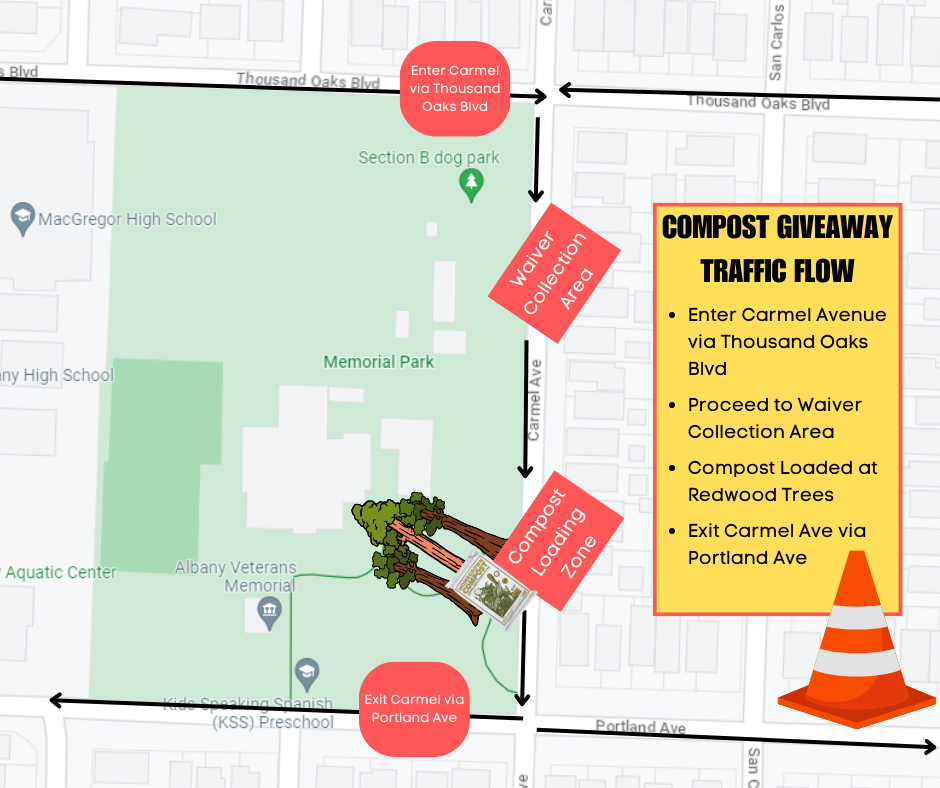 - Proceed to Compost Loading Zone (Under Redwood Trees on Carmel Ave)