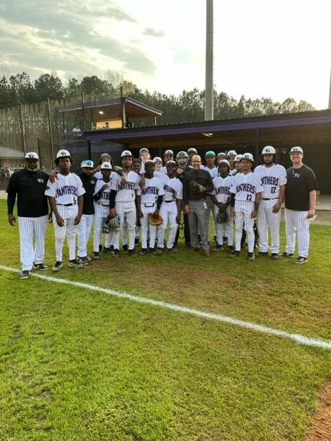 Superintendent Trent North threw out the first pitch at the Panther Baseball Region Opener on Wednesday, March 1.