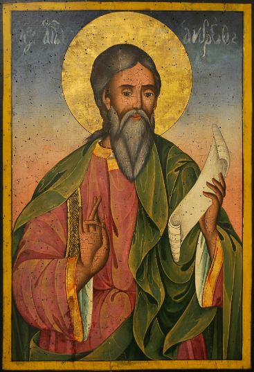 "St. Andrew was the very first disciple called by Our Lord... Andrew is the one who convinced his brother, Simon, to become Jesus' disciple....Now we know Simon as Peter, the first pope"