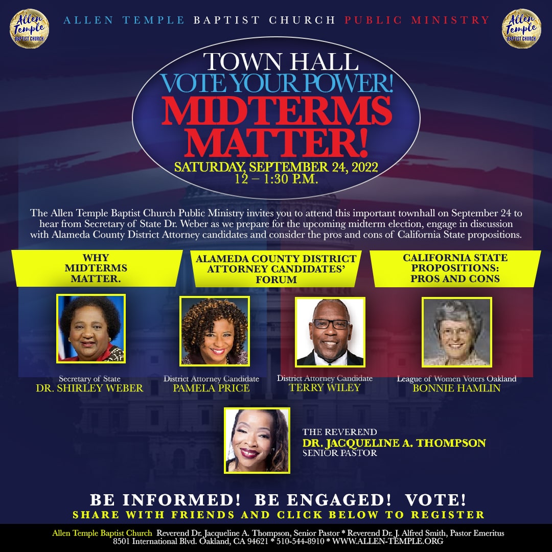 On Saturday, September 24 at 12 Noon, join the Public Ministry for their Vote Your Power Why Midterms Matter Virtual Town Hall. Hear from:
