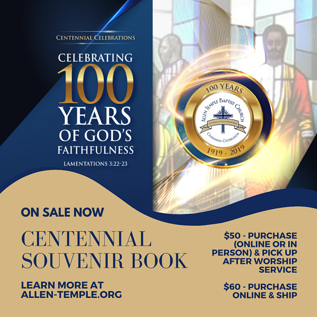 Purchase your copy of The Allen Temple Baptist Church Centennial Souvenir Book ON SALE NOW!