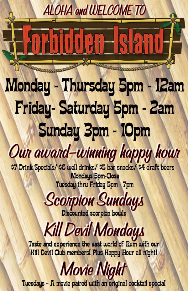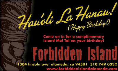 one of the best Tiki bars  in the country, as well as having spawned a Tiki renaissance world wide. The list of Tiki bars and lounges, both in the Bay Area and beyond, that site Forbidden Island's creation and success as a direct influence is getting longer every day! For this, we thank our wonderful and talented staff over the years as well as YOU, our loyal customers and fans, who have made our "little slice of paradise" your home away from home!