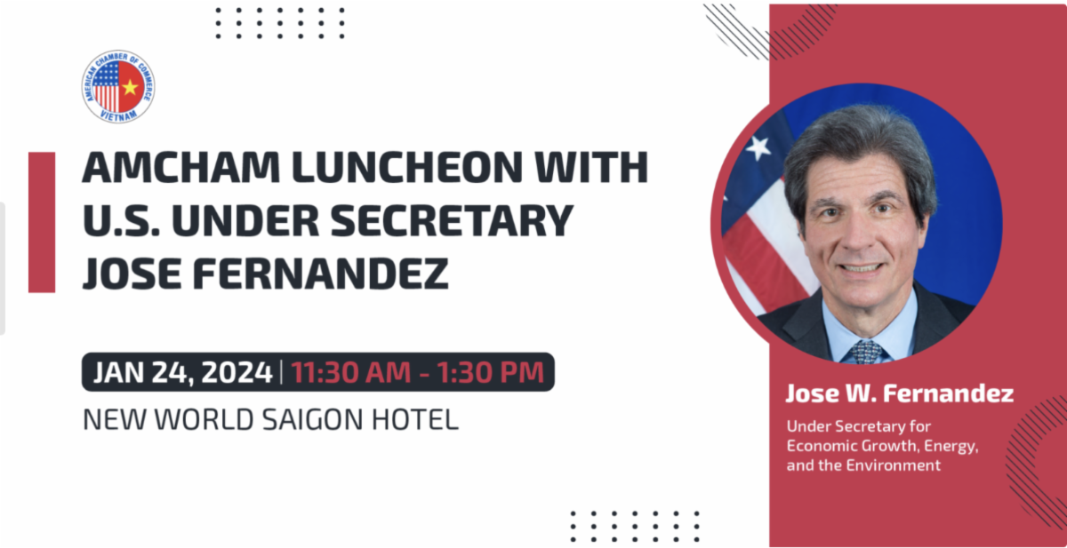 We hope you have already registered for our upcoming business lunch with Under Secretary Jose Fernandez on January 24th. Join us to gain insights into the U.S. government’s economic priorities in Vietnam and use the opportunity to share your perspectives on how the U.S. government can support the success of American businesses in the country.